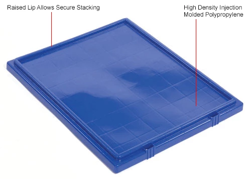 Made of high-density industrial grade polypropylene that’s injection molded for uniform wall thickness and added strength. These lids fit our shipping containers that are made of FDA-Compliant materials for use in food processing and withstand -10° to 150°F. Sold in carton quantities in colors that match containers.