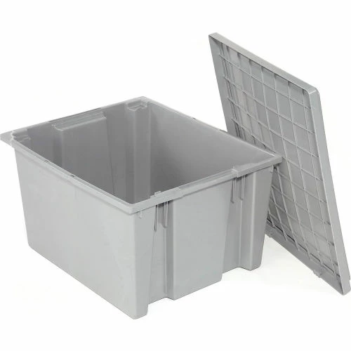 Global Industrial Shipping & Storage Container w/Attached Lid, 27-3/16"x16-5/8"x12-1/2", Gray