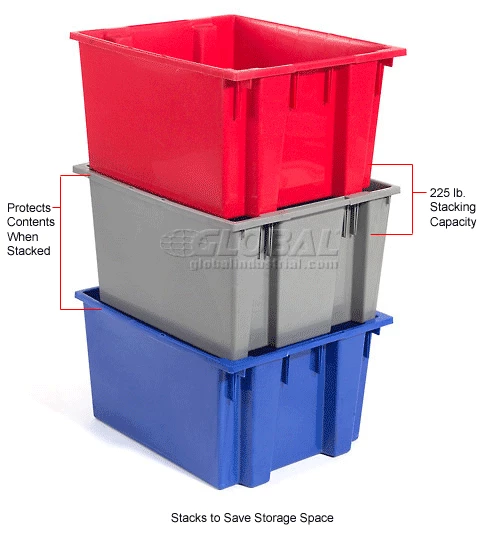 Global Industrial Cross Stack Nest Tote Tub – 25-1/8 x 16 x 8-1/2 Blue – Pkg Qty 6
