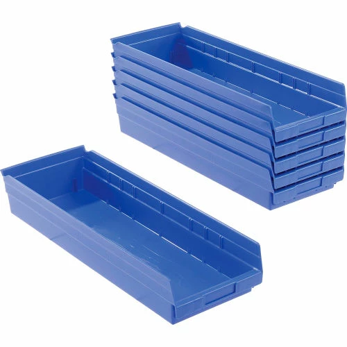 Akro-Mils shelf bins set the industry standard for quality. These durable industrial grade polymer bins are waterproof, and grease and oil resistant. The design features, built-in rear hang lock which allows bins to tilt out for complete access while hooking onto shelf to prevent spills. The wide hopper front, with molded-in label holder, allows complete access to contents of parts bins, and the edges are reinforced for added strength. Nests to save space when not in use. Designed to be used with standard 12″, 18″ and 24″ deep shelving units or racks.