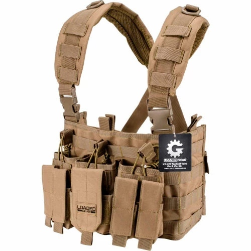 The Loaded Gear VX-400 Tactical Chest Rig from Barska (Tan) is an essential piece of gear that keeps your accessories organized and close at hand. The VX-400 Chest Rig is equipped with 3 dual magazine pouches that can accommodate two standard 30 round magazines each, providing space for 6 magazines total. The Loaded Gear VX-400 can be adjusted to fit most adult sizes and features padded shoulder straps to maximize comfort. Features integrated MOLE System for attaching additional accessories.