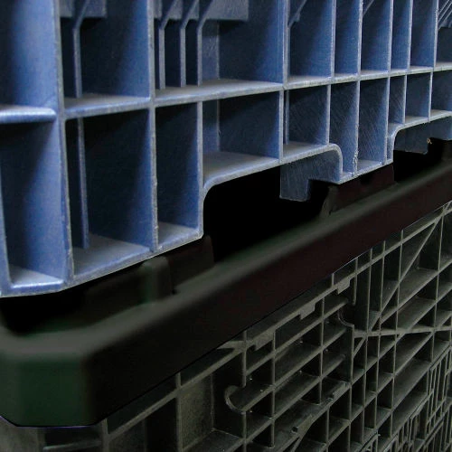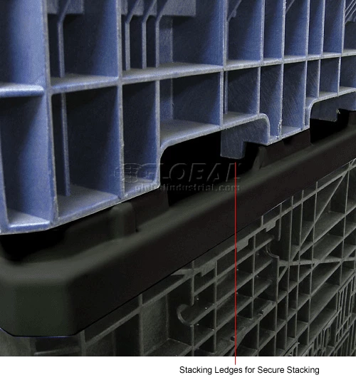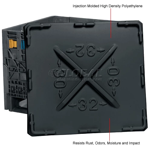Made of black industrial grade polymers, resists rust, odors and moisture. 3:1 stacking ratio for money-saving return shipping. Add lid to protect the contents.
