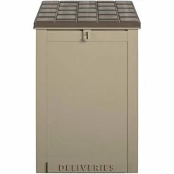 Lifetime 60103 Outdoor Deck Storage Box 80 Gallon, Sand w/Brown Lid