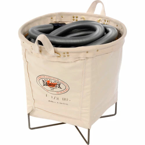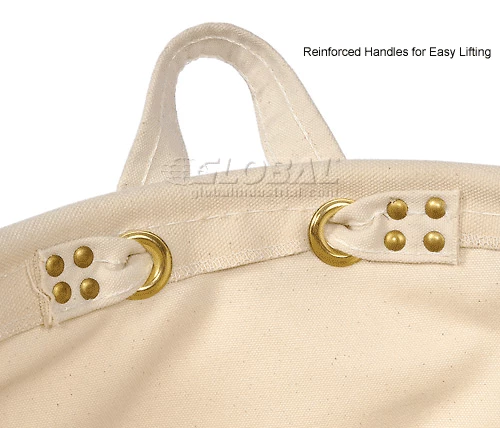 Round all-purpose basket is ideal for multiple uses in both industrial and home applications. Basket is made of heavy weight white canvas sewn to a high tensile spring steel frame. Interior measures 18″ diameter. Includes handles for easy lifting.