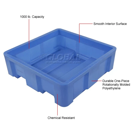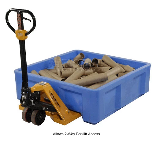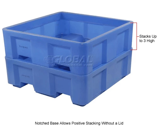 Strong, durable and chemical resistant, our Skid Box features a 2-way fork lift entry with hand grips for manual lifting. The notched base provides positive stacking without a lid. Stacks up to 3 high.