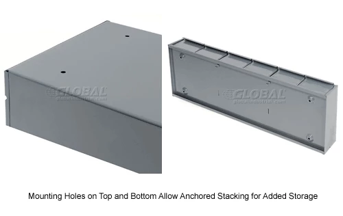 Storage cabinets feature balanced, no-drag drawers with newly designed pulls and extra heavy construction. Drawers have 2 dividers which may be adjusted on 1″ increments to provide desired size compartmentalization. Gray powder coat finish.