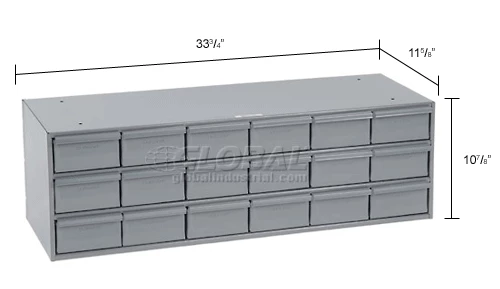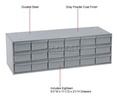 Storage cabinets feature balanced, no-drag drawers with newly designed pulls and extra heavy construction. Drawers have 2 dividers which may be adjusted on 1″ increments to provide desired size compartmentalization. Gray powder coat finish.