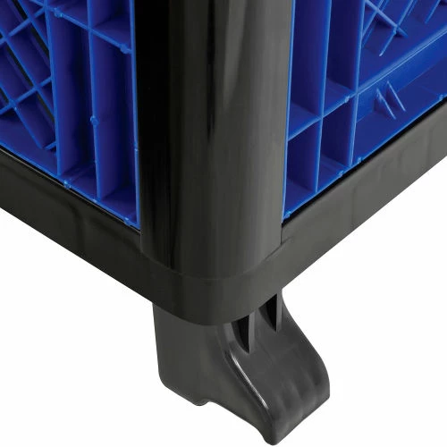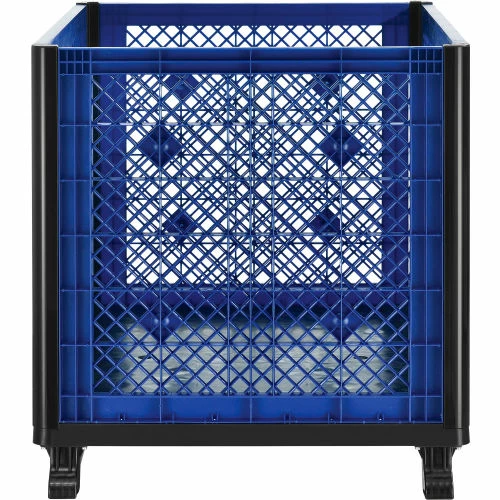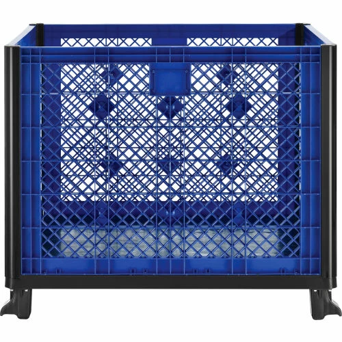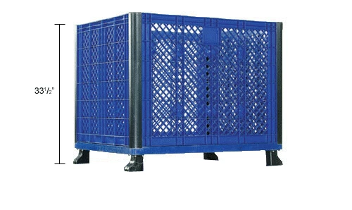 This structurally reinforced bulk storage container is made from high density blue polypropylene for a total capacity of 600 lbs. Stacks up to 4 high for a total of 2000 lbs. and includes 4 feet for stacking. Vented panels allow light, air and sprinkler circulation. Feet also allow 4-way forklift access. Measures 39-1/4″L x 31-1/2″W x 33-1/2″H overall. Bulk containers are shipped flat for reduced shipping. Posts and panels are easy-to-assemble to base using included hardware.