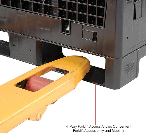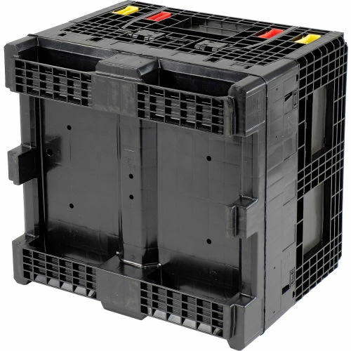 Material handling just got easier with the Global Industrial™ Folding Bulk Shipping Container. Straight injection molded plastic provides these folding shipping containers with high impact resistance. I-beam technology improves base strength by up to 40% stronger than standard folding bulk containers. 2 hinged drop down doors on these plastic shipping containers fold flush against the folding container for easy access to contents. Folds easily with plastic ergonomic latches. High return ratio for reduced costs. Includes labeling area on sides of these folding bulk containers. Allows 4-way forklift access.