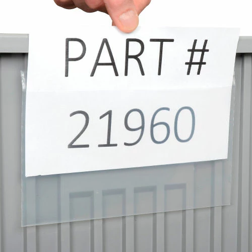 This clear label holder attaches securely with VELCRO®Brand fasteners to any size container allowing easy identification.