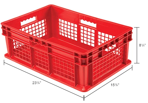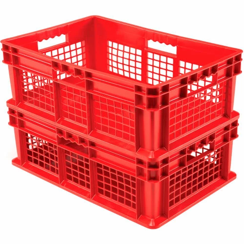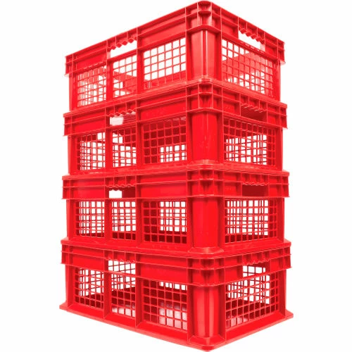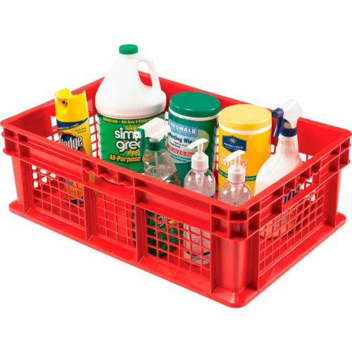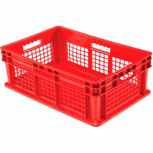 Global Industrial Mesh Straight Wall Container, Solid Base, 23-3/4"Lx15-3/4"Wx8-1/4"H, Red – Pkg Qty 4