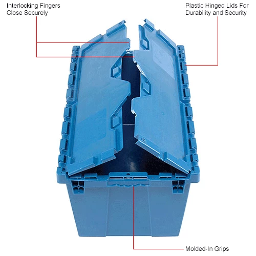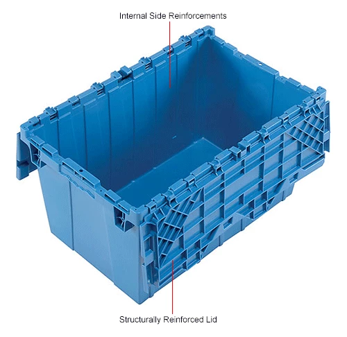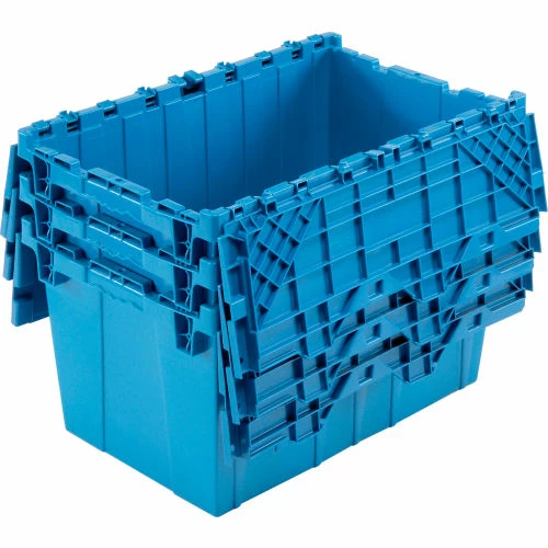 Global Industrial Plastic Attached Lid Shipping & Storage Container 25-1/4×16-1/4×13-3/4 Blue