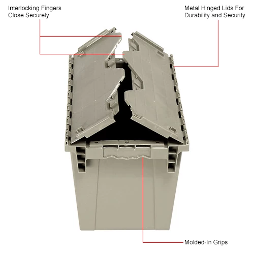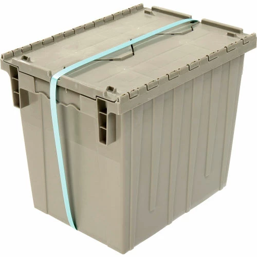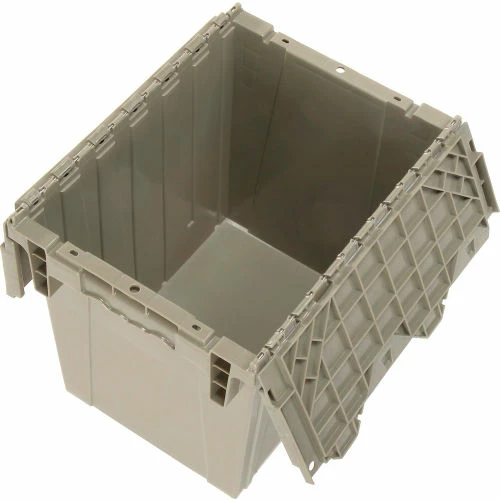 Global Industrial Plastic Attached Lid Shipping & Storage Container DC1813-15 18x13x15 Gray