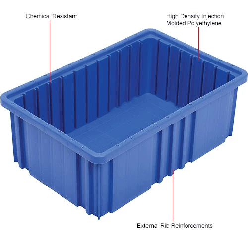 Multi-ribbed external sides provide high impact strength to these high-density polypropylene grid boxes manufactured of FDA approved materials. Standard grid boxes are injection molded and resist most solvents and chemicals. Use for storage or shipping, they stack securely with or without an optional lid. Dividers and Lids sold separately.