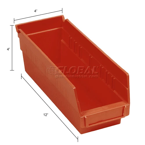 Global Industrial Plastic Nesting Storage Shelf Bin 4-1/8"W x 11-5/8"D x 4"H Red – Pkg Qty 24