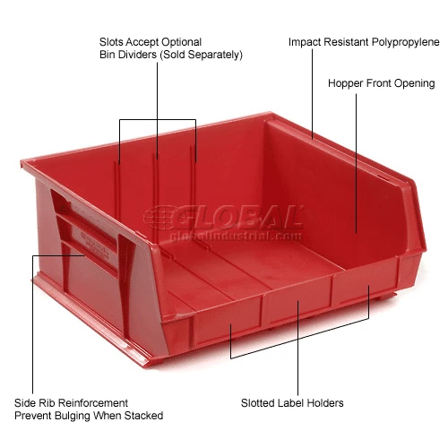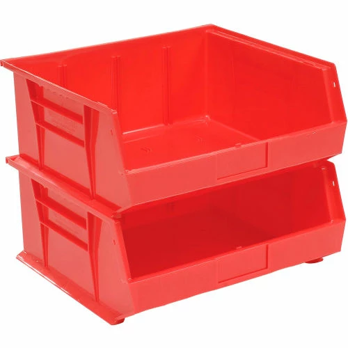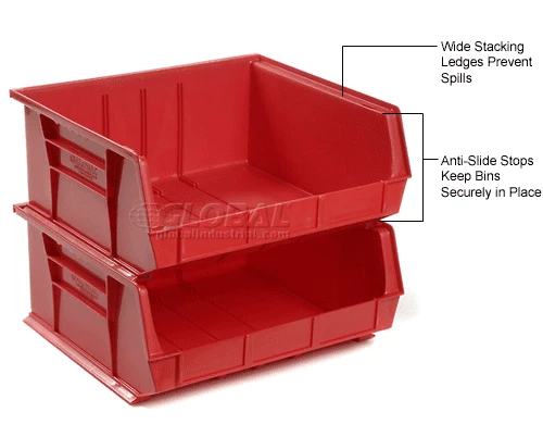 Global Industrial Plastic Stack & Hang Bin, 16-1/2"W x 14-3/4"D x 7"H, Red – Pkg Qty 6