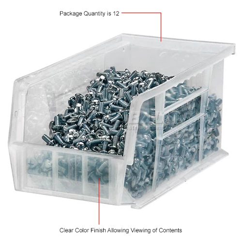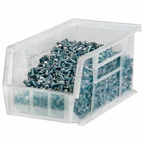 Reinforced walls add strength and rigidity and wide top ledge permits stable, higher stacking. Made using heavy duty, virgin high-density tri-clear polypropylene that is FDA Compliant Resin. Plastic stacking bins withstand freezers and autoclaves up to 250°F. Front, back and side grips allow easy handling. Molded-in full-width rear hanger lip allows bins to hang from louvered panels or rails. Anti-slide stop prevents shifting when stacked. Slotted label holders allow easy identification of contents. Sold in carton quantities. Made-in-USA.
