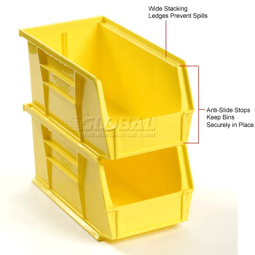 Global Industrial Plastic Stack & Hang Bin, 5-1/2"W x 10-7/8"D x 5"H, Yellow – Pkg Qty 12