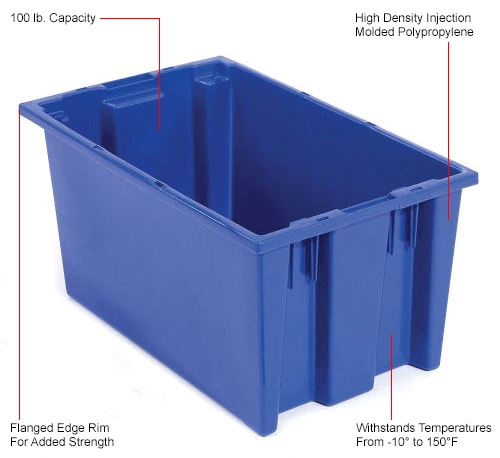 Global Industrial Stack and Nest Storage Container SNT180 No Lid 18 x 11 x 6, Blue – Pkg Qty 6