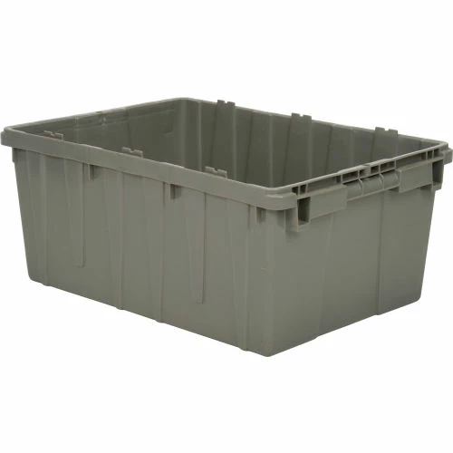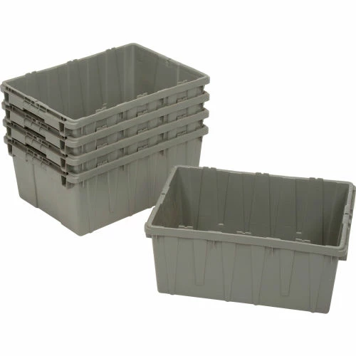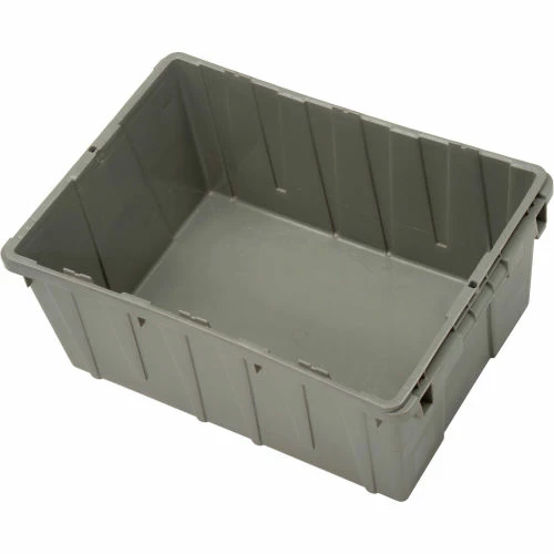 Nestable containers meet the diverse needs of various picking and shipping environments. Safely and securely distribute materials with these durable, affordable shipping containers. Made using injection-molded high density polyethylene. Reusable totes can be used for over 250 trips. Ideal for health care, wholesale, pharmaceuticals, soft goods, grocery and more. Smooth, drafted walls allow easy handling. Molded-in grip handles have an integral hasp to accept cable ties or padlocks for security. Containers are nestable when empty for compact storage and reduced return shipping costs. Gray color. Optional Lids (sold separately) allow secure stacking with raised lip edges. Sold in carton quantities of 5.