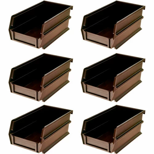 LocBin™ 4-1/8"L x 7-3/8"W x 3"H Brown Stacking, Hanging, Interlocking Polypropylene Bins, 6 CT