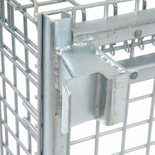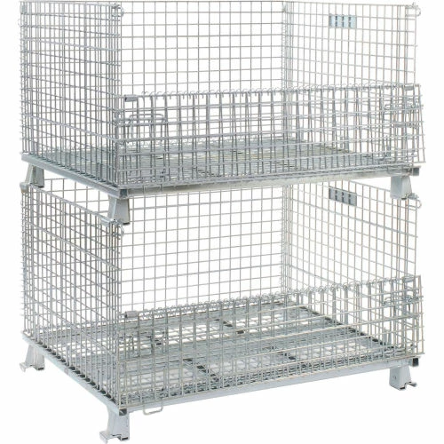 Folding wire containers efficiently maximize any storage space. These wire containers are collapsible to set up in seconds and fold flat to save space and reduce return shipping costs. Open wire mesh provides excellent visibility for easy inventory control. Wire storage containers help eliminate dust and dirt build up. Notched, positive stacking legs permit handling by forklift or pallet truck. Drop gate allows access to contents, even when stacked. Corrosion resistant zinc-plated finish.