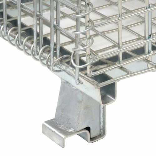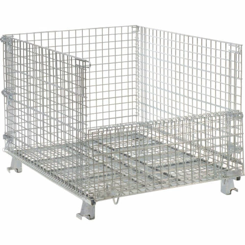 Folding wire containers efficiently maximize any storage space. These wire containers are collapsible to set up in seconds and fold flat to save space and reduce return shipping costs. Open wire mesh provides excellent visibility for easy inventory control. Wire storage containers help eliminate dust and dirt build up. Notched, positive stacking legs permit handling by forklift or pallet truck. Drop gate allows access to contents, even when stacked. Corrosion resistant zinc-plated finish.