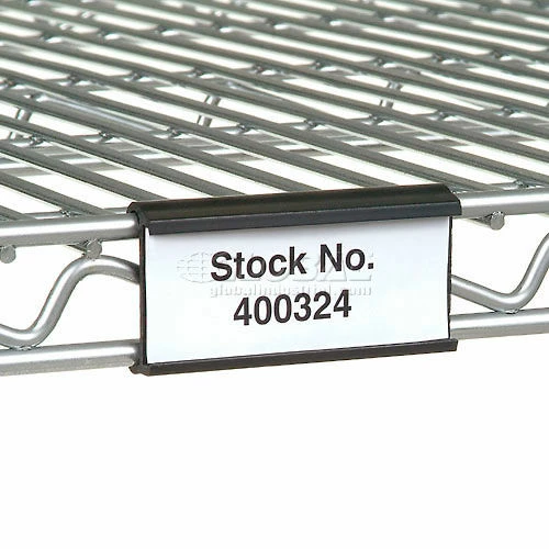 3″W x 1-1/4″H Black Plastic Snaps onto shelf. Accepts slide in label. Package Quantity 25.