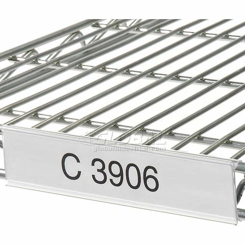 24″W x 1-1/4″H Clear Label holder Snaps onto shelf. Slide in label. Clear holders include paper inserts. Package quantity 6.