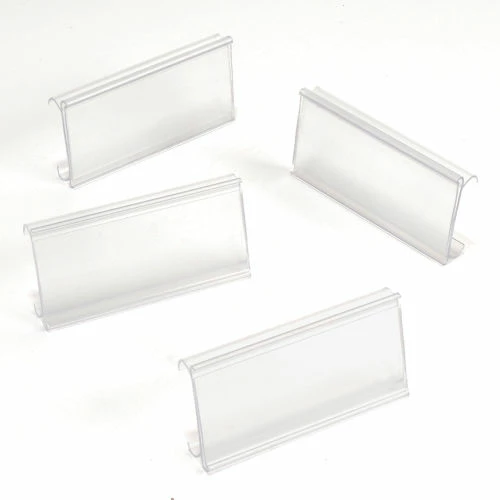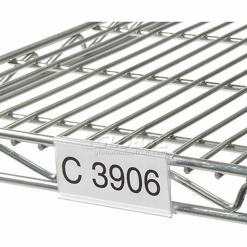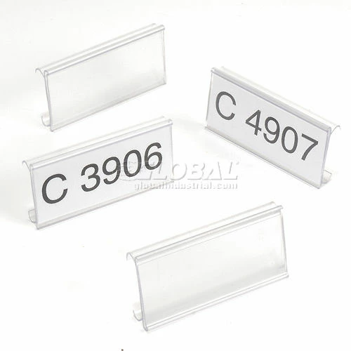 3″W x 1-1/4″H Clear Label holder Snaps onto shelf. Slide in label. Clear holders include paper inserts. Package quantity 25.