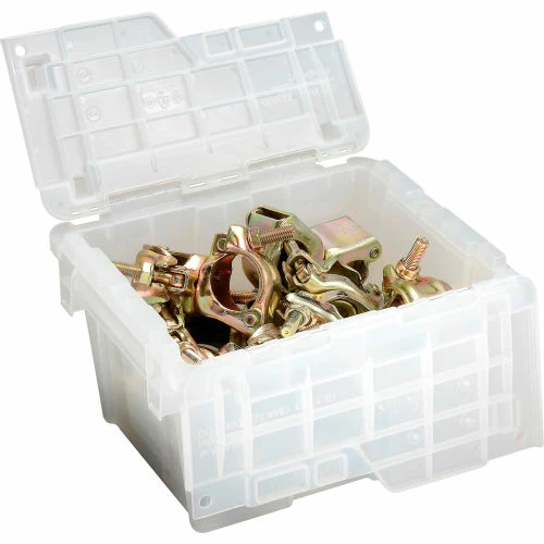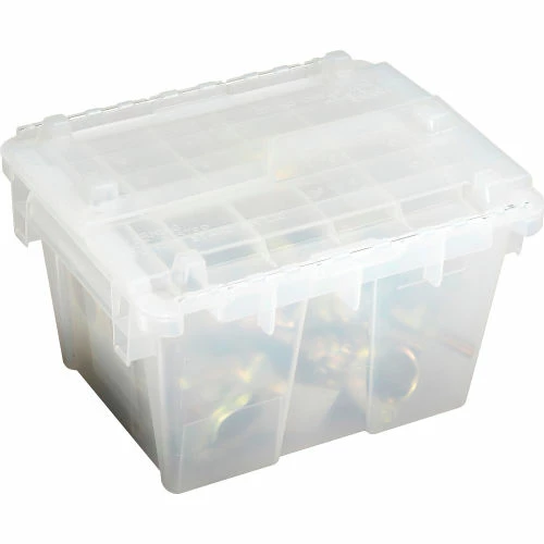 Global Industrial Plastic Attached Lid Shipping & Storage Container 21-7/8×15-1/4×9-11/16 GRY