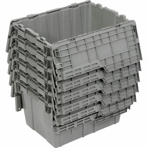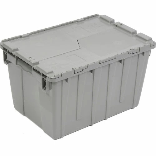 Global Industrial Plastic Shipping/Storage Tote w/ Attached Lid, 21-7/8"x15-1/4"x12-7/8", Gray