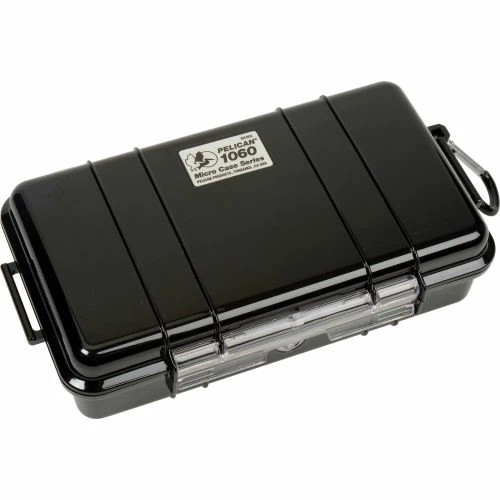 Portable protective case is made of polycarbonate structure for long lasting durability. Waterproof and crushproof micro case provides secure protected storage of small electronics, cell phones, photographic camera, radio and valuable small items.