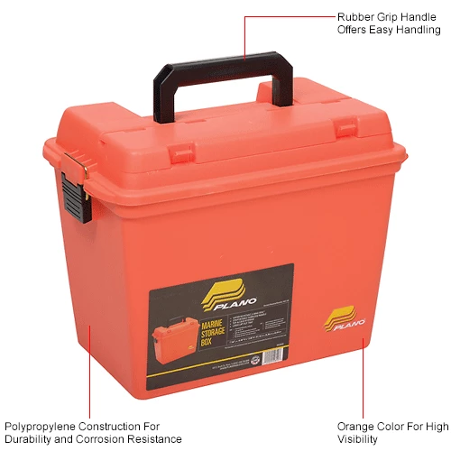 Plano181250 Emergency Supply Deep Emergency Dry Box, tough and functional dry boxes are great for tackle, tools, emergency supplies or anything else you might need to keep dry onboard. Built in the USA, these dry boxes feature a special tongue and groove lid to seal out moisture while the water-resistant, urethane O-ring seals secure the lid completely from water. A top-access storage provides ample room for extra storage. Large Lift-Out Tray for small items storage. The over-molded handles with rubberized grips offer easy, comfortable oversized carrying handle no matter how heavy the load. Watertight and water resistant O-ring seal. Heavy-duty , brass and bailed latch.