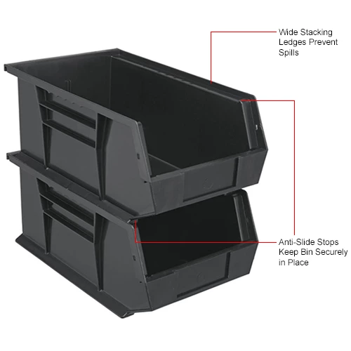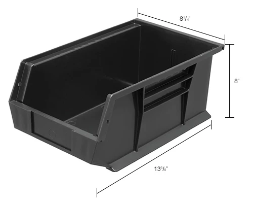 Plastic Stack & Hang Bin, 8-1/4"W x 13-5/8"D x 8"H, Black – Pkg Qty 12
