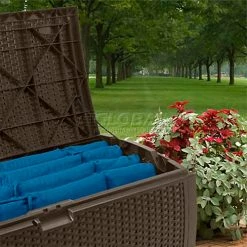 Suncast BMDB60 Resin Wicker Outdoor Storage Deck Box 60 Gallon 26-3/4"L x 27-1/2"W x 26-1/4"H Java