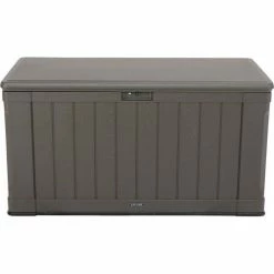 Suncast DBW7500 Outdoor Deck Box with Seat and Rollers 73 Gallon 46"L x 23-5/8"W x 25-1/2"H Mocha