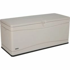 Lifetime 60040 Outdoor Deck Storage Bench Box 130 Gallon, Sand w/Black Bottom
