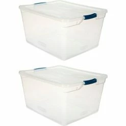 Rubbermaid® Cleverstore™ Clear Latching Storage Tote w/Lid 71 Quart 23-1/2×18-5/8×12-1/4 – Pkg Qty 4