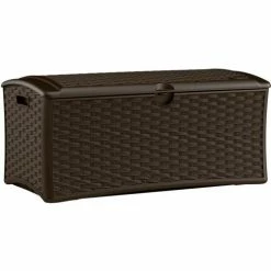 Suncast BMDB12000 Resin Wicker Outdoor Storage Deck Box 124 Gallon 52-3/4"L x 29"W x 26"H Java