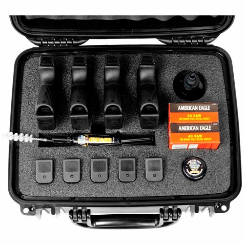 Quick Fire 540R Multi-Pistol Range Case was designed to hold 4 pistols extra magazines, ear protection, ammo, bottle of gun oil and a 22 conversion kit for pistols that have this feature. Our QF540 is a compact version for those who want to take a smaller case to the range. Case interior is our standard 1.8# closed cell foam which is impervious to water & chemicals. The case is airtight/watertight and includes a pressure relief valve, it also comes with lockable padlock holes for transport safety and includes 2 Keyed locking latches. All our cases are made in America and come with a lifetime warranty.