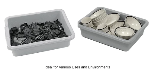 These durable gray polyethylene tote will last for years and will provide excellent service for storing a wide range of items. Tote can be stacked with lids or nested without for convenient space saving. Optional lid available.