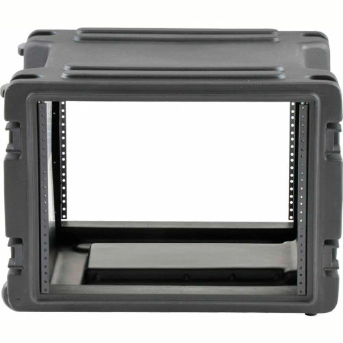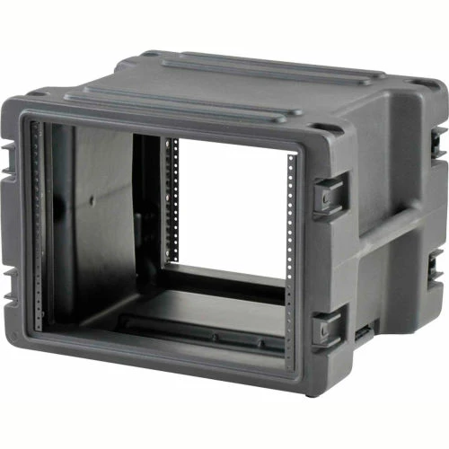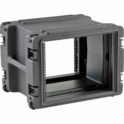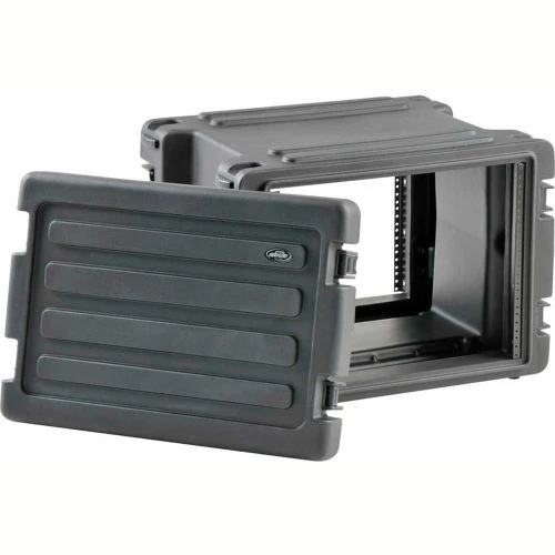 Ideal for those looking to transport heavy remote recording and sound reinforcement equipment, ranging from power amplifiers to signal processors, the Roto Rolling Rack models offer secure protection with the convenience of sturdy built-in wheels and a handle. Designed as a complete upgrade and stronger alternative to the existing Roll-X-Rack models, the new Roto Rolling Racks feature industrial grade steel threaded rack rails (allowing non-destructive screw mount installation and removal) and full access rear lids. Rear rack-rails are included which allows enhanced load capacity and stability, ideal for especially heavy weighted power amplifier units. Roto Rolling Racks are rotational molded of high impact LLDPE Polyethylene with in-line wheels supporting heavy loads, a nearly indestructible low-profile injection molded telescoping cushion grip rubber over-molded pull handle and cushioned handle for carrying comfort. Our proprietary trigger release latching system, with TSA recognized and accepted recessed locking latches, enables users to securely lock their cases and still have them inspected by airline security personnel and safely checked as luggage. These racks are stackable under the new 1SKB19-RSF4U Studio Flyer 4U model.