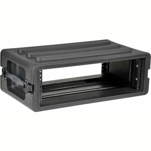 The re-designed Roto-molded Shallow Rack Cases meet the needs of musicians and pro audio/video engineers. The new 1SKB-R2S now has a full front and rear cover instead of a rear access panel for easy access. Both doors have a rubber gasket to keep water out of the case. The Shallow Racks are roto-molded for strength and durability and feature a new exterior design with interlocking capabilities, recessed steel, Mil-Spec black twist latches, shock absorbing rubber feet and new heavy-duty flush handles. With the addition of rear rack rails and the new cover design, the depth on the new Roto-molded Shallow Racks has been extended to 10.7″ from front to rear rail. Gear can now be mounted front and rear with the supplied rackmount clips.