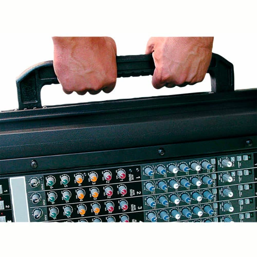 The SKB-R1400 Gig Safe is a part of a multiple section rolling rackmount system that will fit in the back of your car. Featuring a 14U+ top rackmount that will accommodate deeper analog and digital mixers, and a cover designed to fit over installed XLR cable connectors (top to rear mounted).The SKB-R1400 Gig Safe will attach to the SKB19-REX6 Expander case and the SKB-3224 Rotomolded GigDolly to give the same convenience and rack spaces as the SKB19-R1406 Mighty GigRig – only in multiple sections for transporting. 14U rack for deeper rackmount mixers