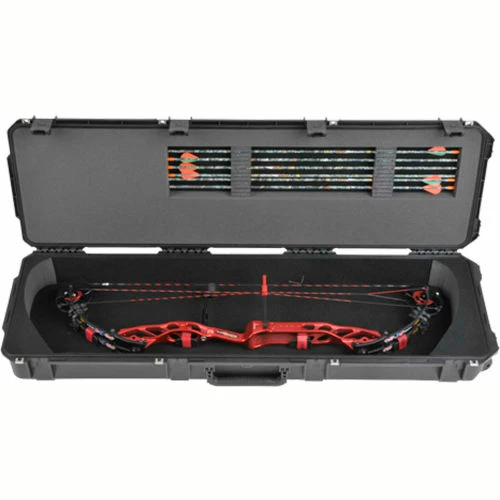 To maximize the benefits of their latest size of MIL-STD Injection Molded Watertight cases, SKB has developed new interiors for the newest 3i Series case, the 3i-5014-PL to accommodate longer bow setups. The iSeries 5014 Target / Long Bow Case has four (4) SKB patented trigger latches, four reinforced padlock locations, cushioned snap down handles on three (3) sides and recessed, in-line skate style wheels, to ensure that transporting your gear around the world is both worry and trouble free. The interior of the iSeries 5014 Target / Long Bow Case features a custom foam insert and repositionable tie-downs for secure fit and cushioning of your gear. New state of the art water-jet cut foam arrow system that holds up to a dozen arrows is included. The iSeries 5014 Target / Long Bow Case case has a uni-body design, which eliminates the need for excessive metal reinforcing hardware found on traditional flight cases. SKB iSeries injection-molded waterproof cases are constructed of ultra-high-strength polypropylene copolymer resin and feature a gasketed, waterproof and dustproof, submersible design (IP67) that is resistant to corrosion and impact damage. The molded-in hinge with stainless steel hinge pins, patented “trigger release” latch system, comfortable, snap-down rubber over-molded cushion grip handles, secure stacking, and automatic ambient pressure equalization valve (MIL-STD-648C) all contribute to its military grade design. The iSeries 5014 Target / Long Bow Case is covered by SKB’s unsurpassed Lifetime Warranty and the $1500 Content Coverage if your gear is damaged by an airline.