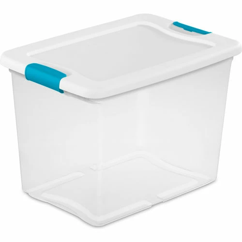Sterilite 25 Quart/24 Liter 14958006 Clear Storage Latch Tote White Lid Blue Latches 16-1/4 x 11-1/4 x11-5/8