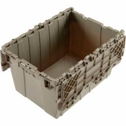 Global Industrial Plastic Attached Lid Shipping & Storage Container 25-1/4×16-1/4×13-3/4 Gray