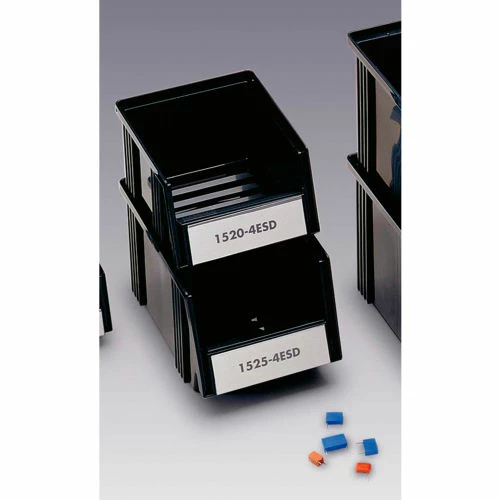 ESD stacking bins are made of semi conductive polypropylene, and include a full-width front label with protective shield. The bottom of the stacking bin is corrugated for easy picking of small parts. An ESD label is located on the base of the bin for visual assurance of ESD protection.