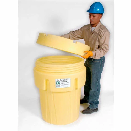 Linear low-density polyethylene (LLDPE) drum storage overpack features rugged construction, yet is economically priced. Perfect for emergency response, overpacking damaged or leaking drums, or for collecting soiled rags, used sorbents and oil filters. Convenient screw-top lid is easy to close and open. 5 Year Limited Warranty.